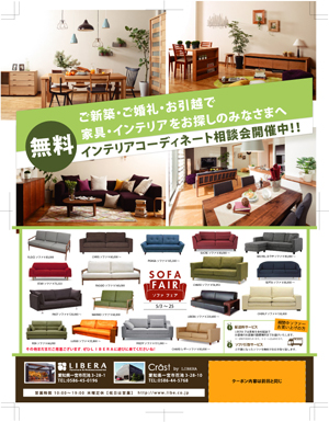 LIBERA・Crastでは期間限定でソファフェアを開催しています。
