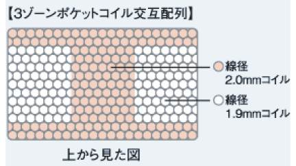 ポイント① 荷重がかかる腰周辺に線形の太いコイルで強度をあげているので、
