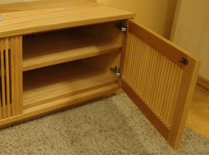 縦格子のデザインが目を引く、和テイストなTVボードです。
