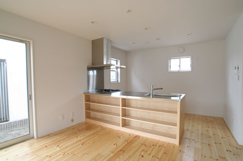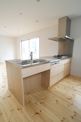 シンクの下はオープンにして、