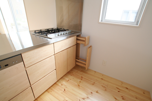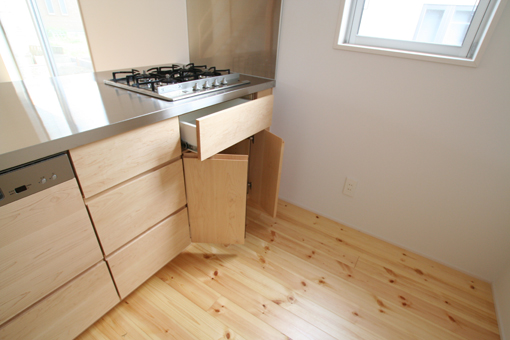 コンロ下は引き出しと、開き扉になっています。