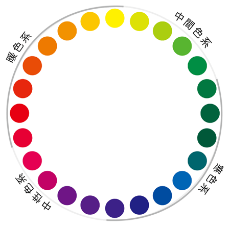 近い色でつなぎ合わせ、リング状に並べたものを色相環といって、