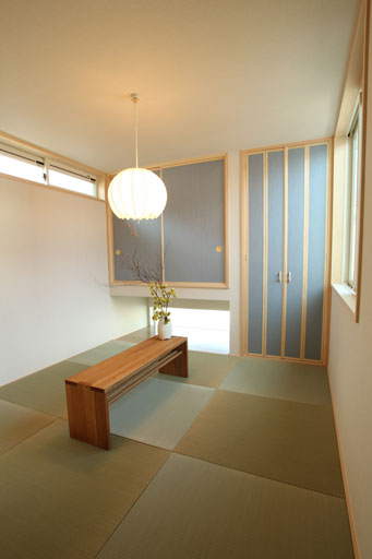 和室にも差し色でブルーが入り、建具をナチュラル色にする事でリビングとはまた雰囲気になりますね。