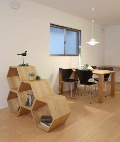 六角シェルフ w520×d400×h450 を4つ組み合わせています。