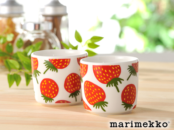 MANSIKKAとはそのまま「イチゴ」という意味です。ラテマグいっぱいにたくさん描かれたイチゴはとてもポップで、見ているだけで元気がでるデザインです。