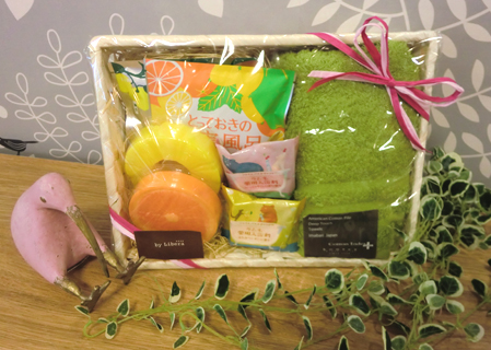 入浴剤4つ、ソープ2つ、フェイスタオルのセットです。