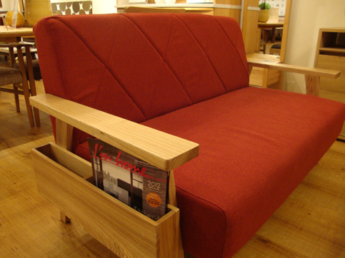 ナラ材を使った、木製のボックス付きの肘がポイントのSofaです。